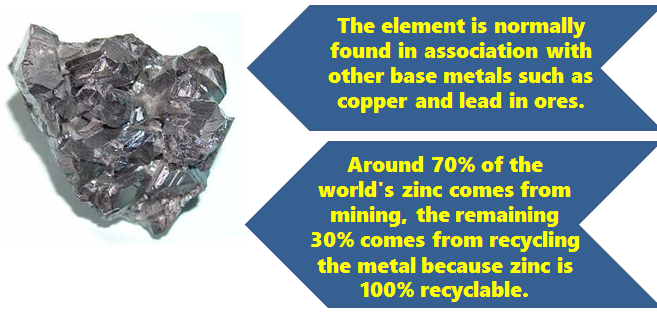 Zinc can be obtained in many forms. It can be found in our food, on the ground and many more. If we want to obtain zinc on its rock form, we will have to extract it from the ore called Sphalerite.