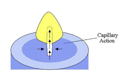 Capillary Action is also at work when those candles burn through out the night. The heat from the wick melts the wax and the melted wax moves up through the wick supplying the fuel necessary to keep the fire burning.