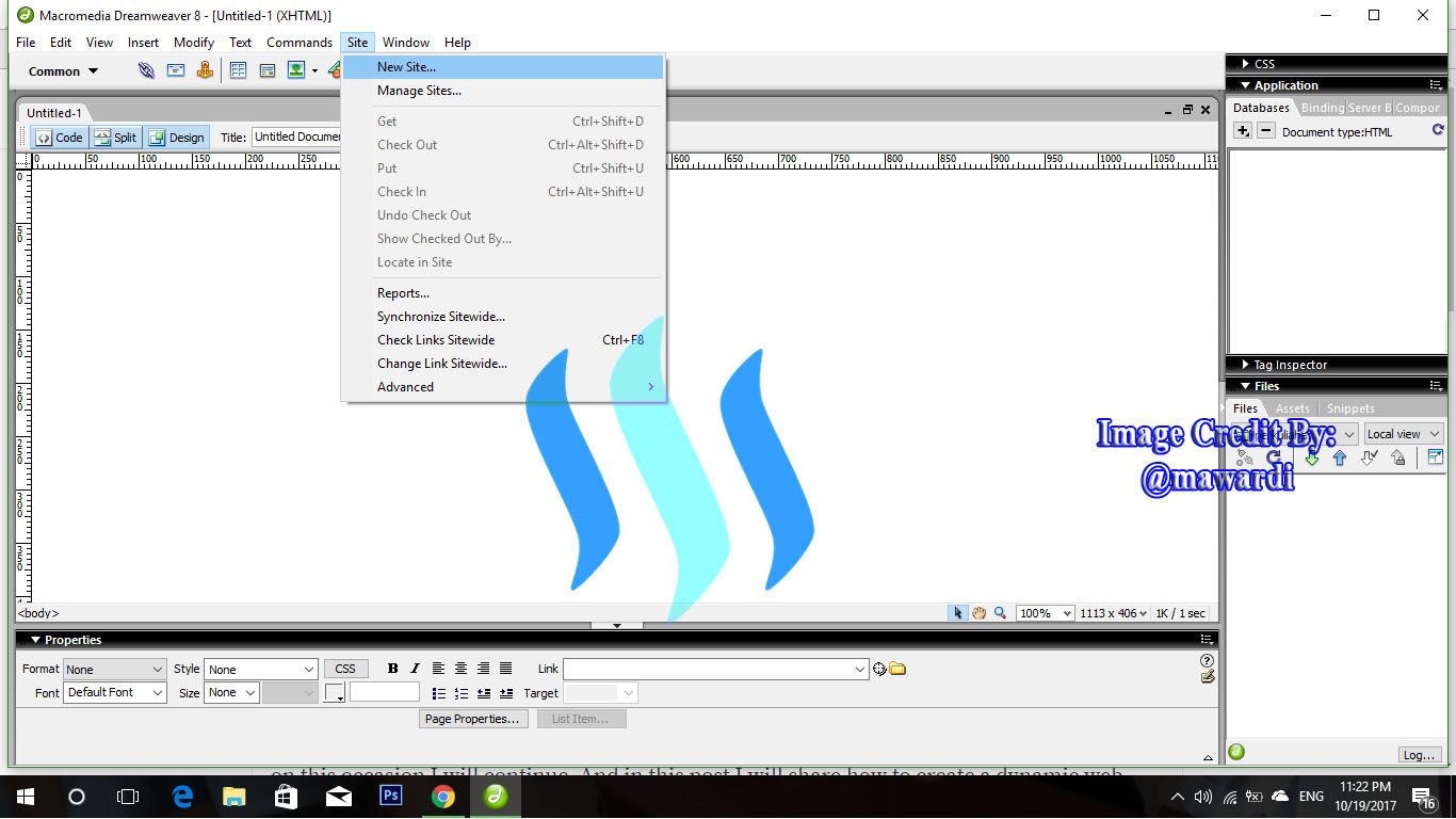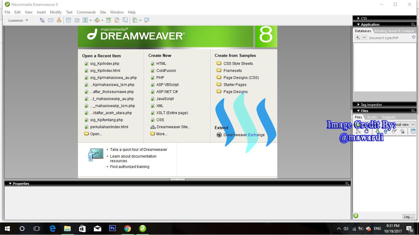 Open aplication Macromedia dreamwever and it looks like the image below.