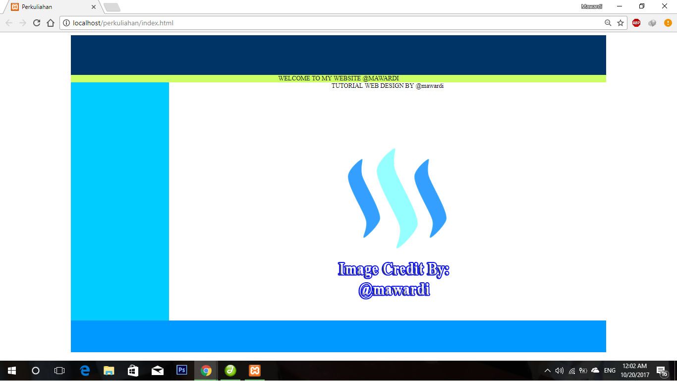 After you run its xampp and open mozila or google crome app then type http://localhost/perkuliahan/index.html .. then press enter then our website page will run in accordance with the results we have designed earlier ..