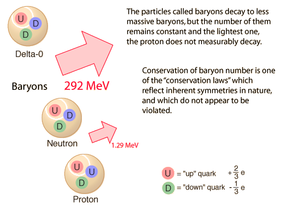 Individual particles cannot just appear out of nowhere or disappear into nothing because of the conservation of energy. Electrons cannot decay into smaller neutral particles because of conservation of electric charge. Protons do not decay because of conservation of baryon number. This law sounds obscure, but it is one of the most significant facts of nature.