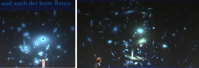 The eternal light vacuum like shown in image 2 to the left, which developed to the cosmological background radiation isn't 300 000 years old but we're talking about a time frame of 5 000 Billion years. It was a very slow growth of particle mass and an gradual weakening of gravity. This is the consequence of a ever so slow change of space itself.