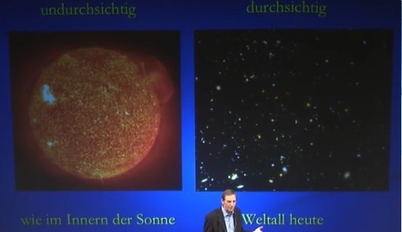 After the creation of elementary particles one can start to talk about temperature and entropy. The Universe looked like the surface of our sun not transparent, a Plasma bottom left. As the nucleus’s captured electrons the space became transparent like we know it today bottom right.