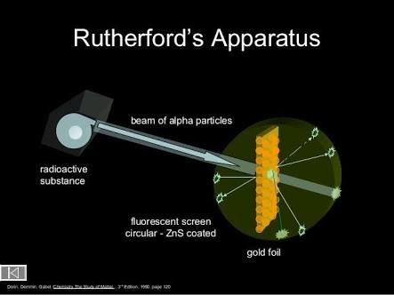 Escaping Particles, Rutherfor's experiments led him to a startling conclusion that under the impact of alpha particles from radioactive radium, nitrogen atoms were breaking up and so releasing hydrogen nuclei, later called 'protons'.