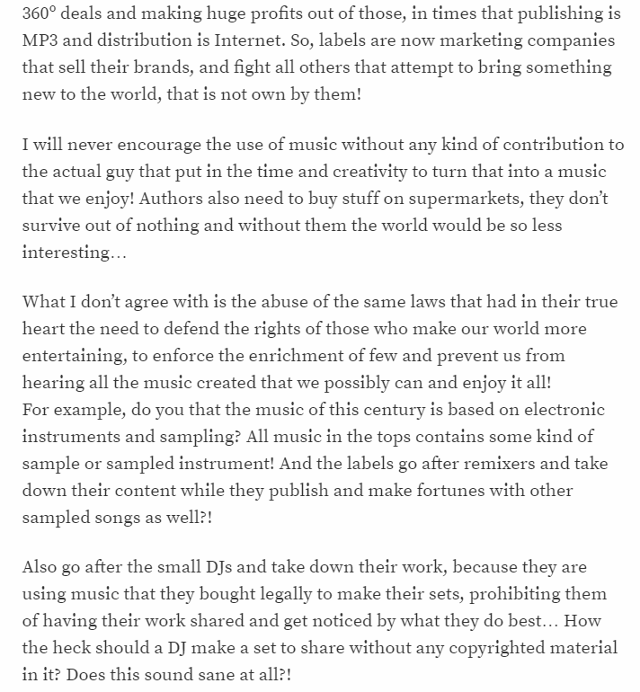 Far more terrible for different sorts of manifestations, which constitute reasonable utilization of the copyrighted materials, as remixes, mashups or DJ sets. On the off chance that you need to share any of these with your fans, these days you can't! In the event that you transfer these attempts to YouTube or SoundCloud in a matter of seconds they are brought down for copyright encroachment. This is not adequate. These are subsidiary works of the first ones, which serve to advance the creators or give them an alternate utilize, similar to a remix influences individuals to move to an undanceable tune, or a DJ set which combines and mixes a few tracks to deliver a totally unique sound vibe. These manifestations should be distributed and their creators should gain their bucks if individuals like it!