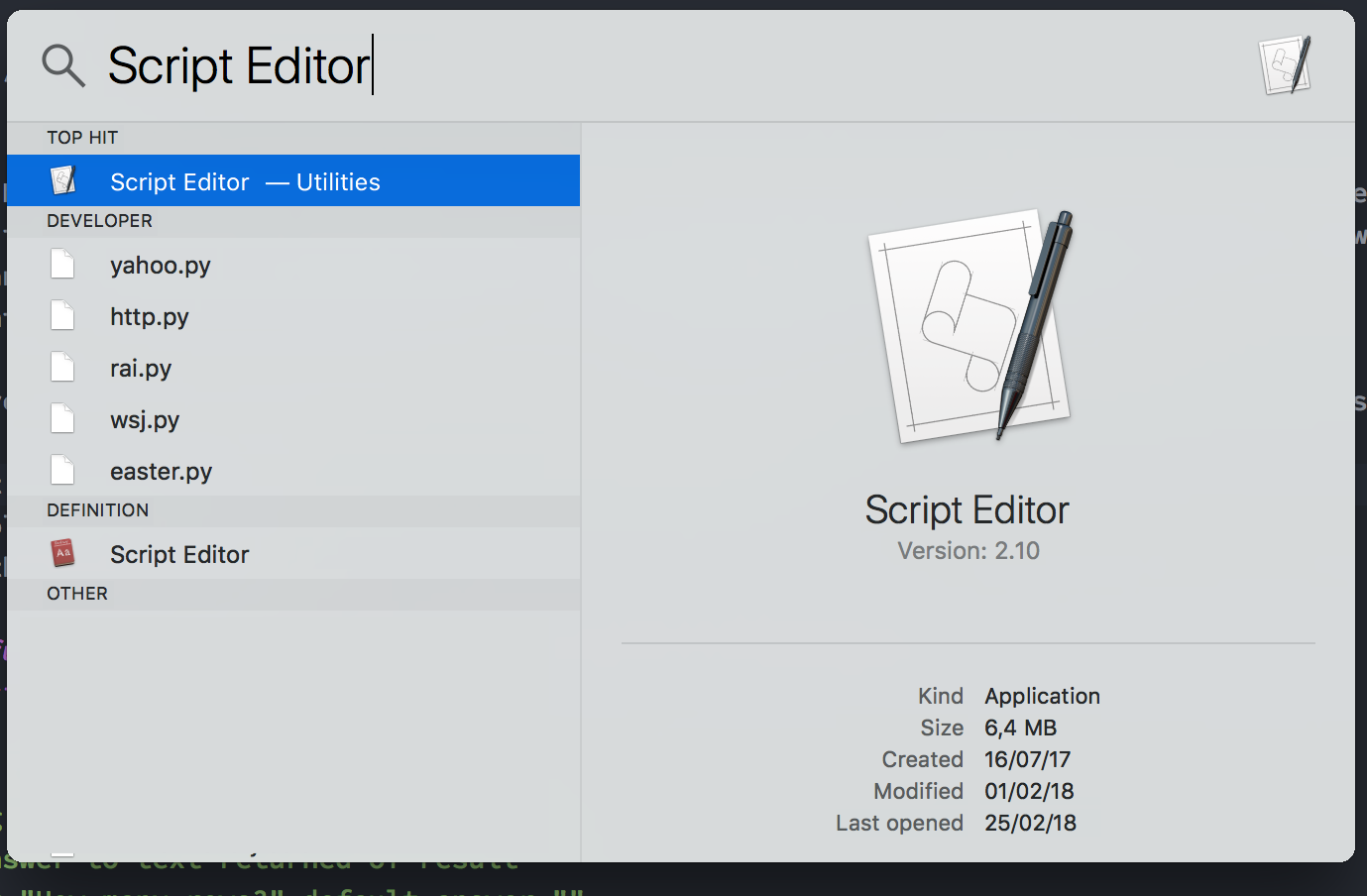- Open Script Editor application, you can search the apps from spotlight or found the app from your Launchpad.