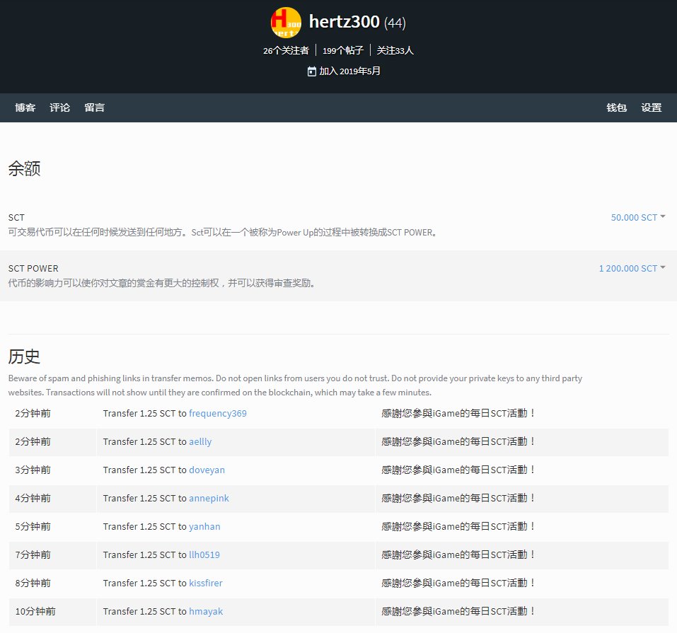 上周的活动将由这8名参加的朋友平分10SCT,每人将得到1.25个SCT的奖金,恭喜以下这8位朋友,奖金已经在发送的路途中,如果没有收到请联系本人。