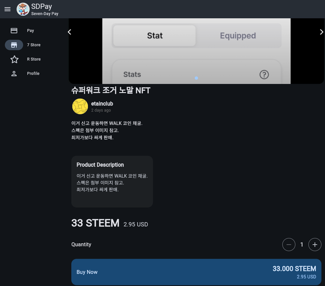 현재 슈퍼워크 NFT 신발이 하나 올라와 있습니다.