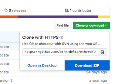 - Go to this link https://github.com/etherdelta/etherdelta.github.io and download the last version of Etherdelta by clicking on