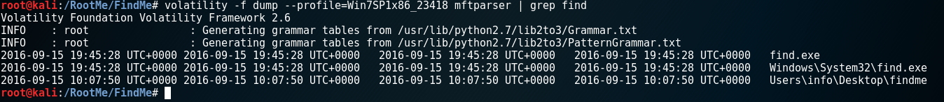 We will now see how to extract non-resident files (whose size is greater than 1024 bytes) from a memory dump. For the demonstration I use, as for the previous part, the files of the challenges of the site [Root-Me] (https://www.root-me.org/?lang=en), do not hesitate to register If the hack interests you!