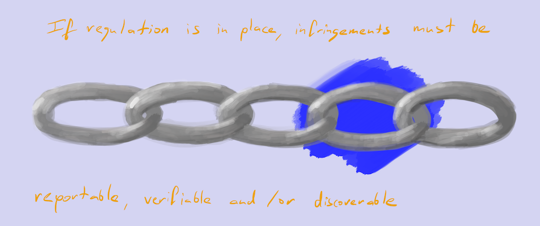 - If regulation is in place, infringements must be reportable, verifiable and / or discoverable