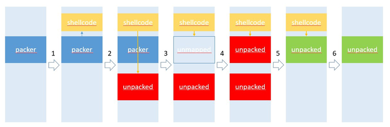 3. The shellcode unmaps the packer.