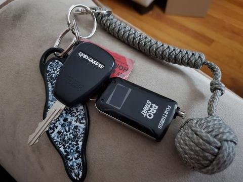 A self-defense key fob might look simple and harmless, but it can give your attacker a real world of pain. Draw it out using the ring that holds the keys and repeatedly hit them with the monkey fist that houses the steel ball. You can also switch it up and lacerate them with the keys through the same rapid swinging motion. I would advise you learn some techniques beforehand to really teach a potential attacker hell.