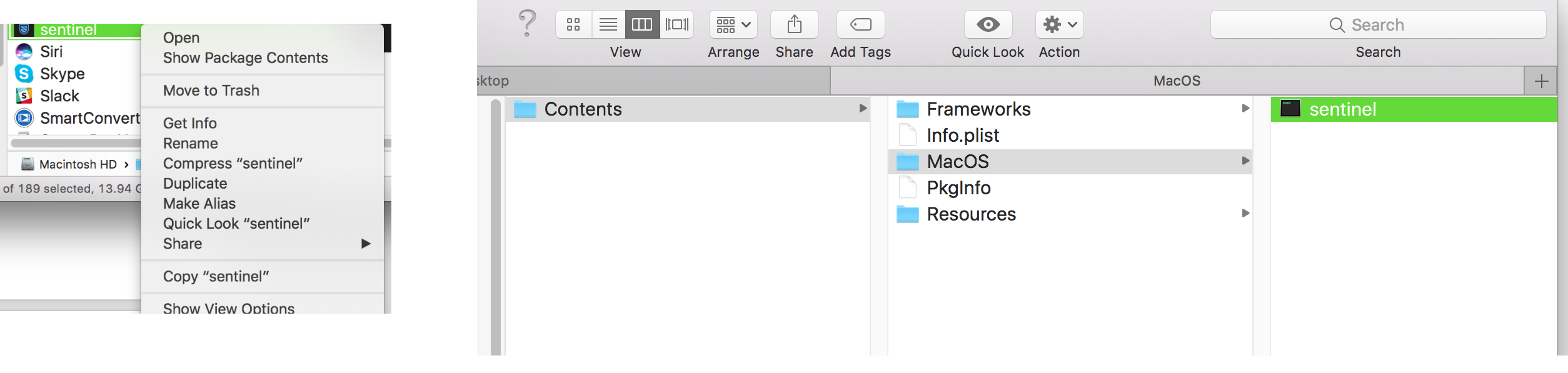 - Step 6. Then, open Contents —> MacOS and run the package called sentinel