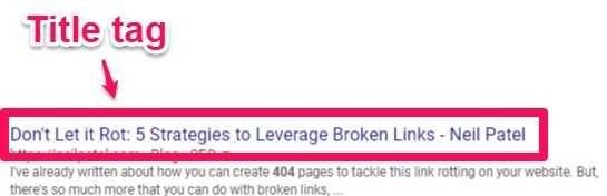 Most importantly, your title tag will appear as the huge blue link on the SERPs.