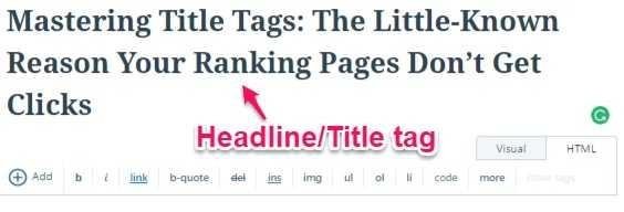 If you’re writing an article or a blog post in WordPress, the area where you enter a headline will automatically become the title tag.