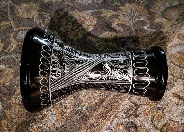 Here's another shot of the doumbek's outside pattern just for reference. These are pretty easy drums to learn on and have a simple tonal quality for mid to high pitched rhythm.