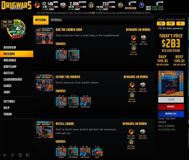 Drugwars.io has upgraded missions into actual minigame gta style missions just like I asked. This steem based game is the biggest blockchain dapp out of all cryptocurrency