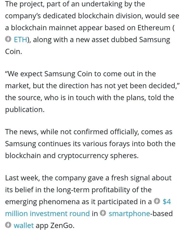 Realizes that an ethereum.based coin means paying high gas fees to #ethereum mining consortiums and ASIC mafia and when they find that out they will realize they will have to switch this #samsung coin over to #eos #blockchain the only one which has the speed, capacity, competency and developers to handle a company like Samsung and a #samsungcoin
