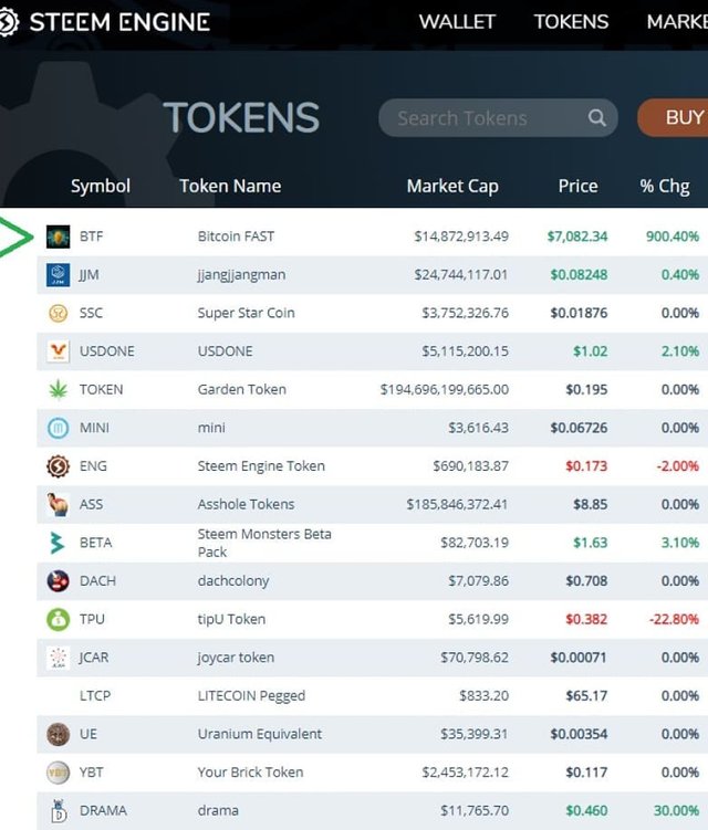 As you can see on the tokens page BTF is number one in 24hr volume https://steem-engine.com/?p=tokens