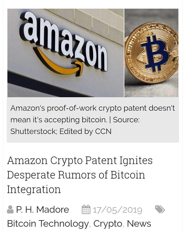 Amazon Crypto Patent has been confirmed real and msand Amazon wants it's own Bitcoin like Blockchain