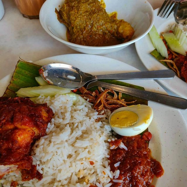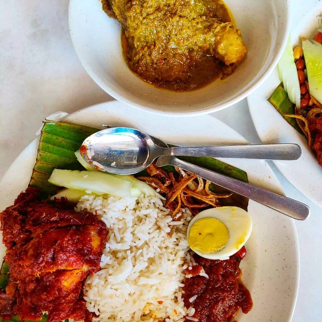 This, is what you call "Nasi Lemak with a side of Chicken Rendang". Can be found at Ali Ah Muthu Nasi Lemak place.