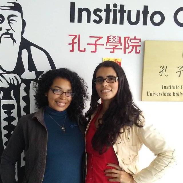 En el Instituto Confucio de Caracas. Trabajar duro, aprender constantemente y estar a lado de personas que te ayudan a surgir y a triunfar es lo que me ha reforzado el IC.... 👍😌Al lado de la pintura de Confucio... #share2steem #asisoy #aprendiendoidiomas #cn