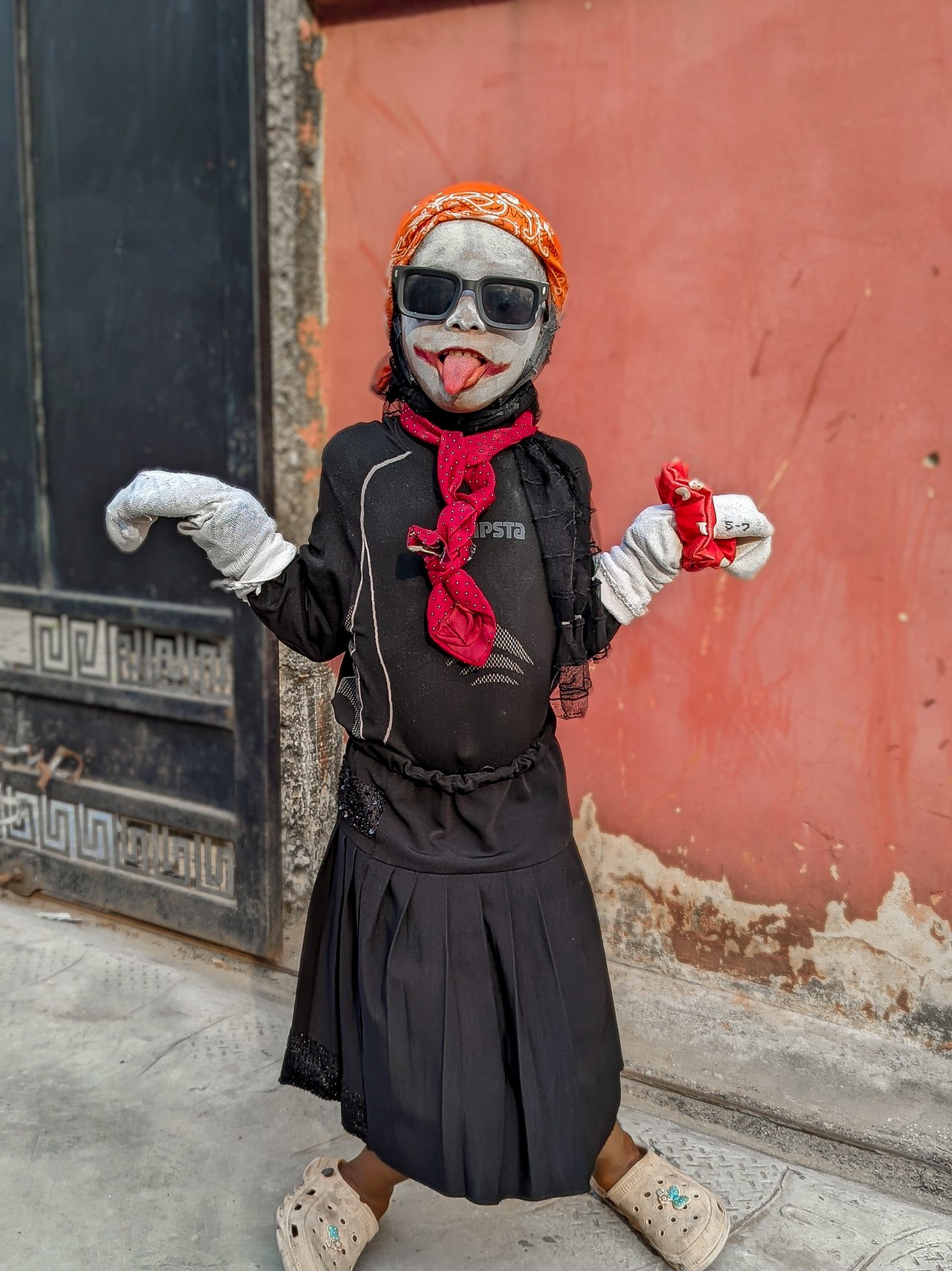 With my help, they were able to paint their faces in white, black and red colours. The use of