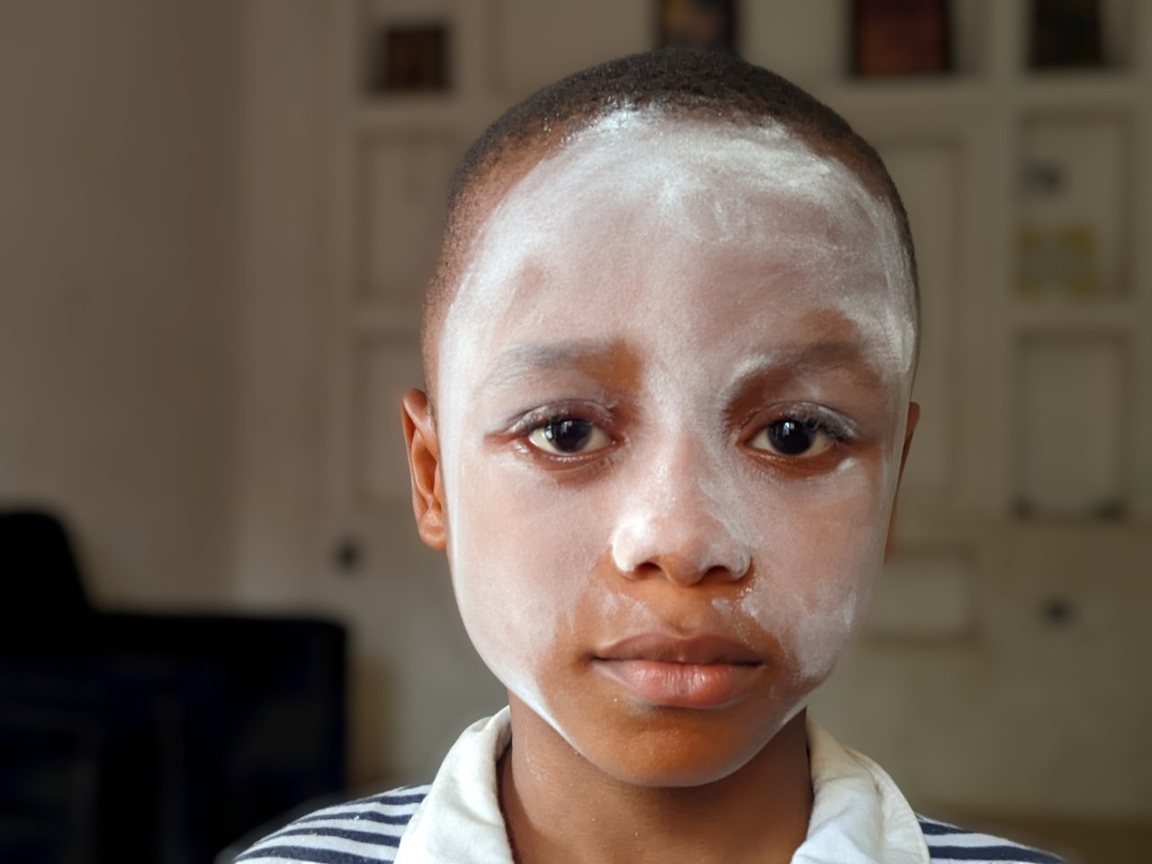 Before painting their faces which was the first thing I did so as to avoid stains, sweat, or wear off, I told them to take a quick shower and clean themselves with a clean cloth. The essence was to avoid sweat from making the powder diminish its colour.