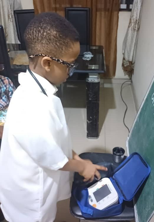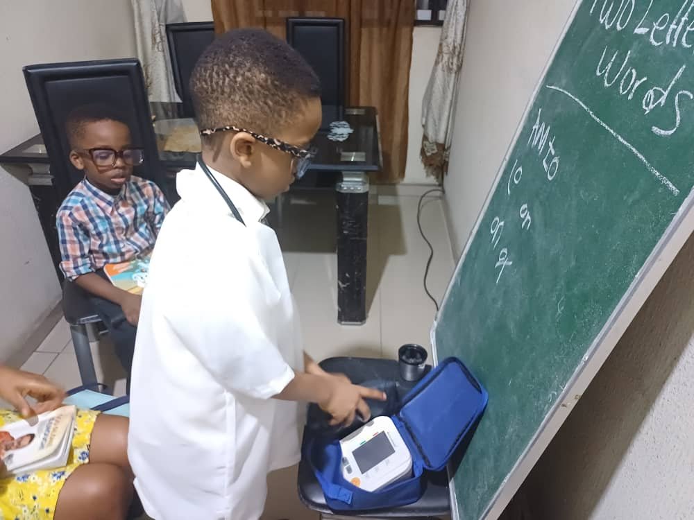 While we carried out the role-play, We had a happy experience. The little kid who acted as a teacher did a great job in teaching. When he chose the teaching role, I was sceptical about what he could do, but I allowed him since that was the role he loved to play. He carried his students along with his teaching; even when the doctor visited his class, he was welcoming.