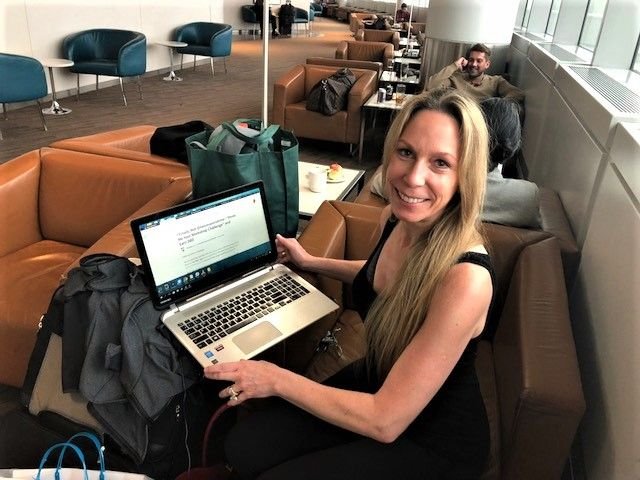 Airport lounge waiting for the next flight, and we just flew 5.5 hrs from Hawaii to Vancouver. You can't see it well, but I'm showing @tkappa challenge
