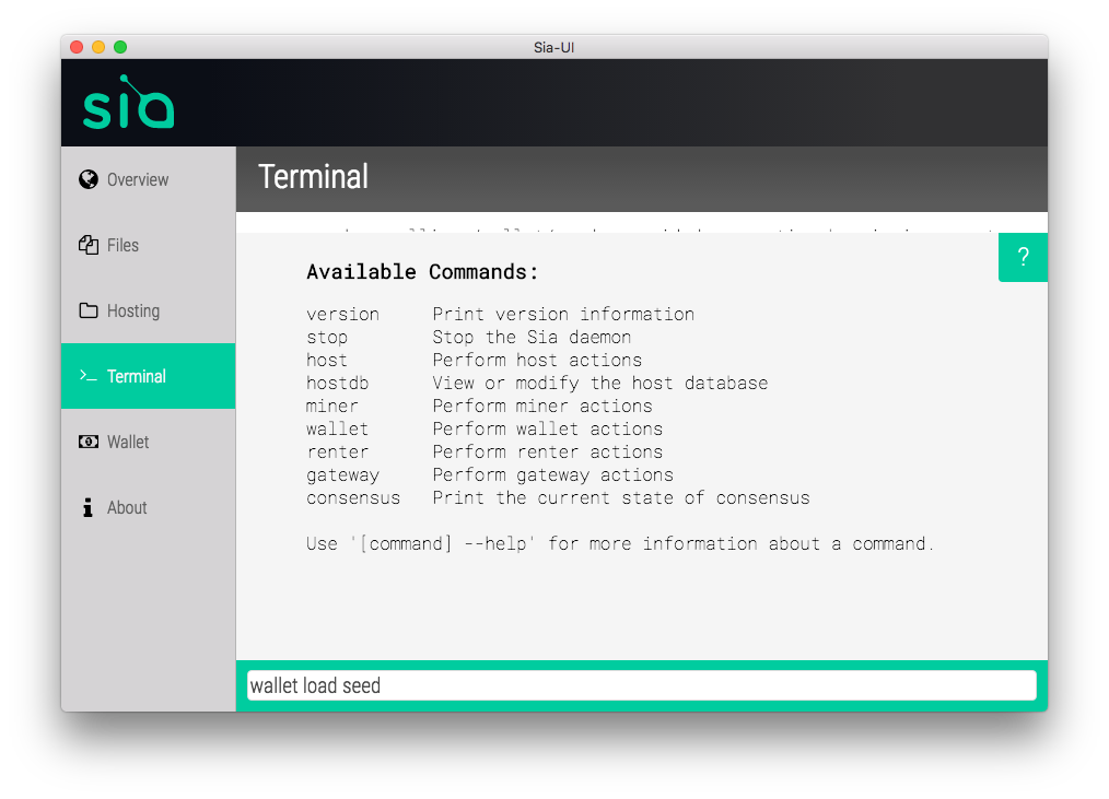 - In the terminal type: wallet load seed