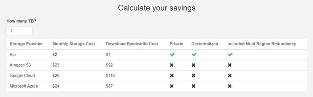 기존의 클라우드시스템인 amazon의 경우 23달러의 비용이 발생하지만 sia는 오직 2달러만을 필요로합니다.(한달 1TB기준)