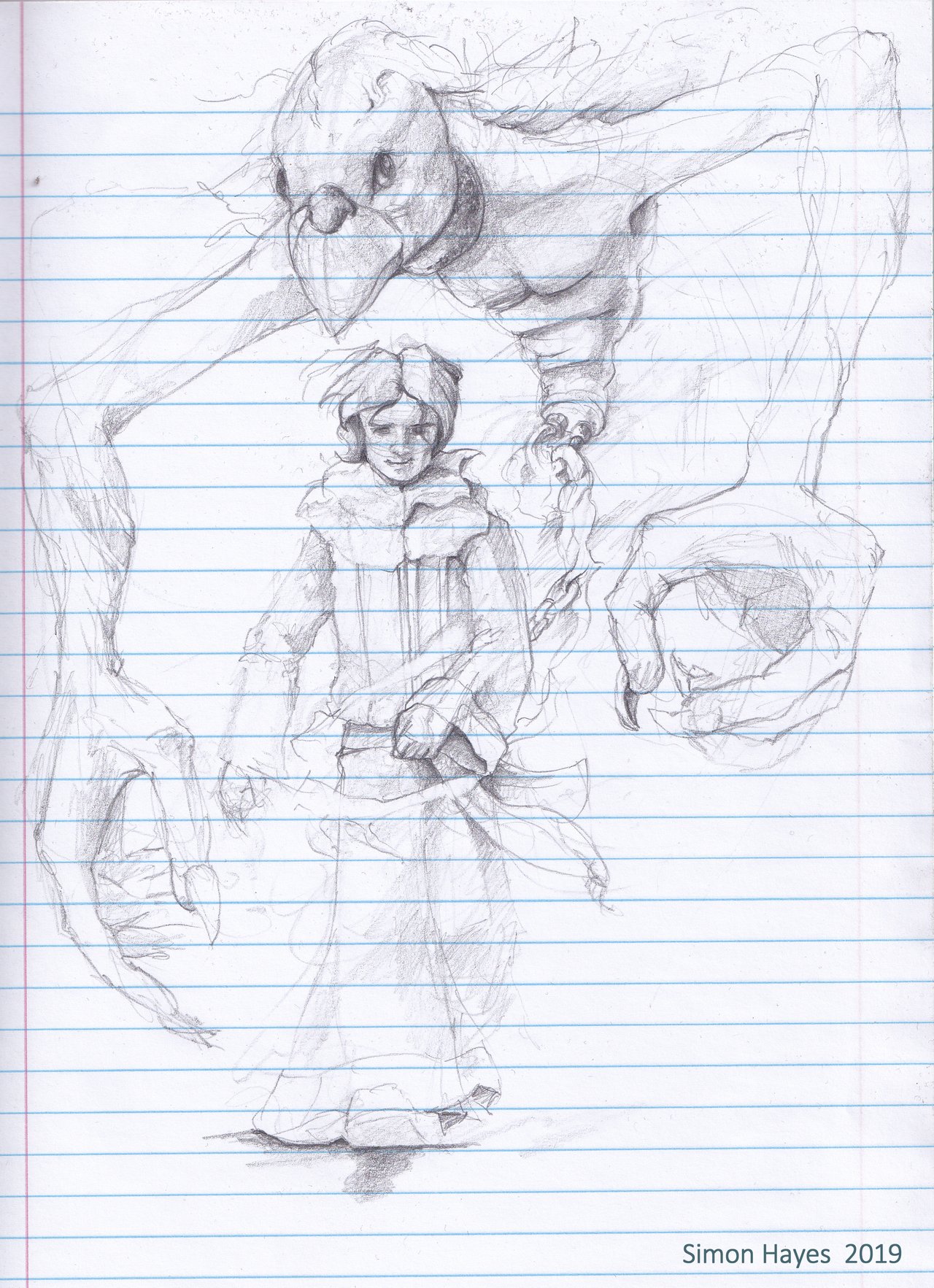 Very interesting doodle, @brundlethwaite :) He seems like he has a tethered summoned entity ? A mage of some sort? :D