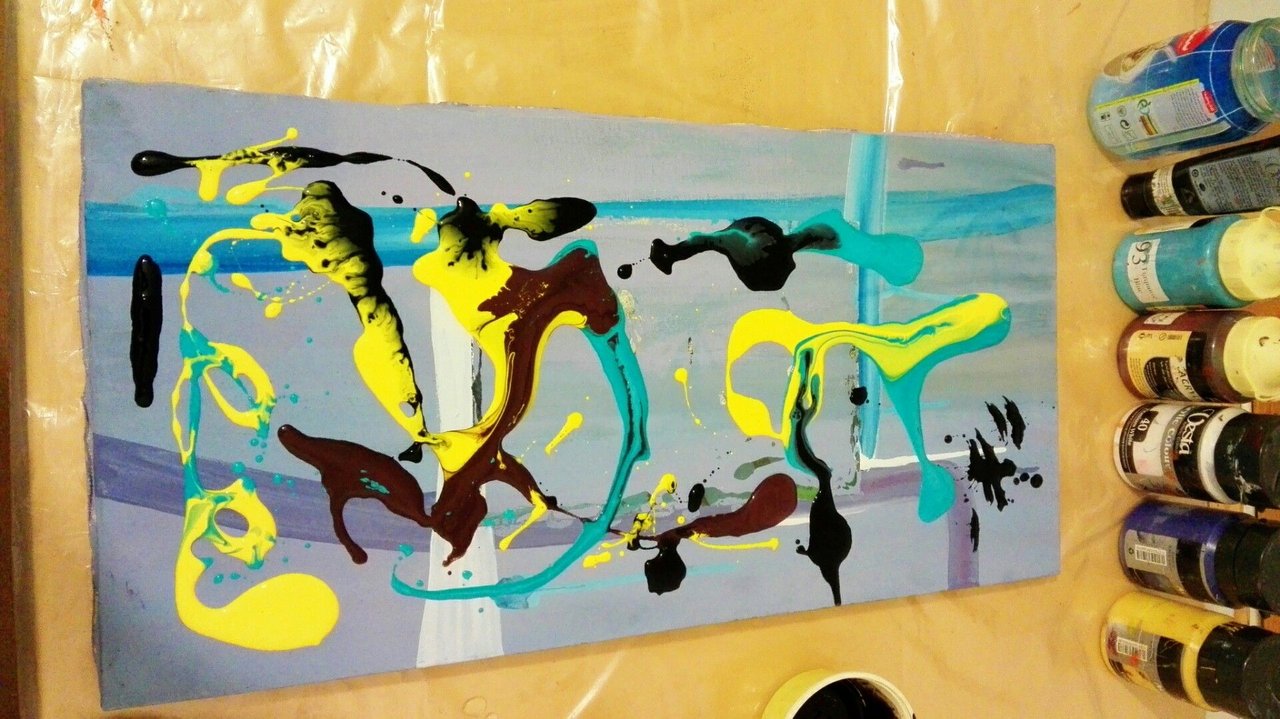 i was playing with colors in my studio , today i repaint an old canvas which it was useless for me,