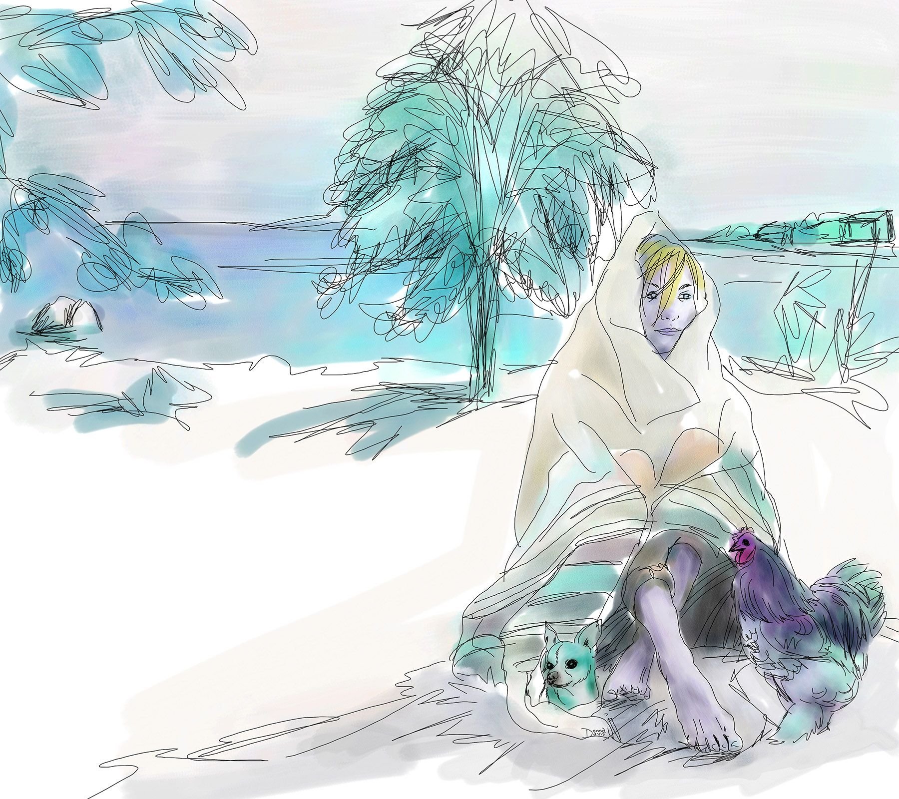 This piece was sketched during the storm. Today I outlined and added colour. The cool icy branches mean little to the singularity me...I am my own generator...I am my own power source.