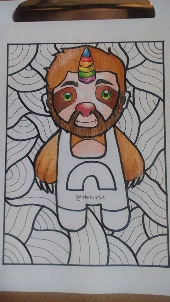 INTRODUCING MYSELF TO SLOTHICORN BY MAKING AN ART COMBINATION OF ME AND SLOTHICORN (TRADITIONAL ART)