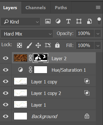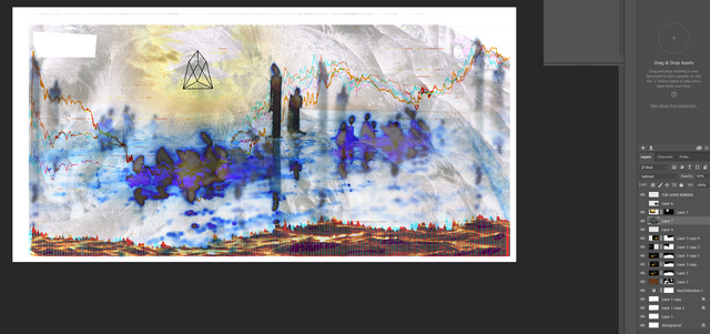 This is overlaid with the Hard Mix blending mode applied, followed by a layer mask. The resulting mask means the volume at the bottom is now glitchy waves, which I'm going to call "Elliots" with a tongue in cheek jab at a certain steemian.