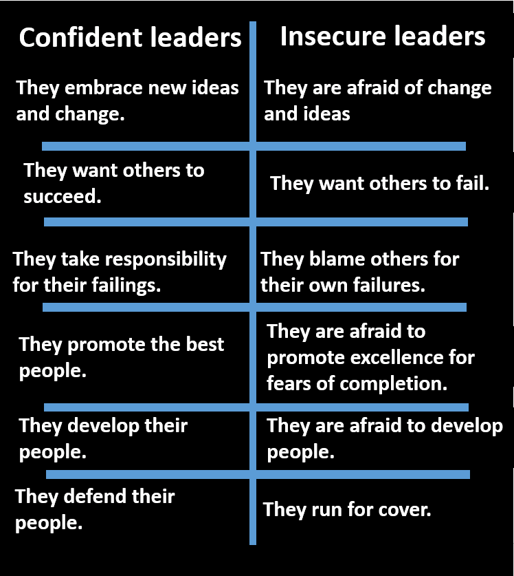 Additionally, and more importantly, insecure leaders are afraid to take a chance on people, give them opportunity to rise to a challenge.