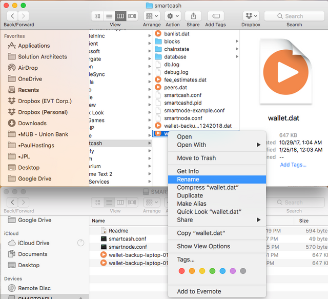 Side Note: You may have noticed a few other files on my USB stick. I also copied my smartcash.conf and smartnode.conf for those that run smartnodes this is a good idea to backup as well so you can restore your wallet tied to your smartnodes