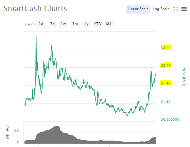 to claim. Currently the price of SmartCash in the market is$0.142 USD