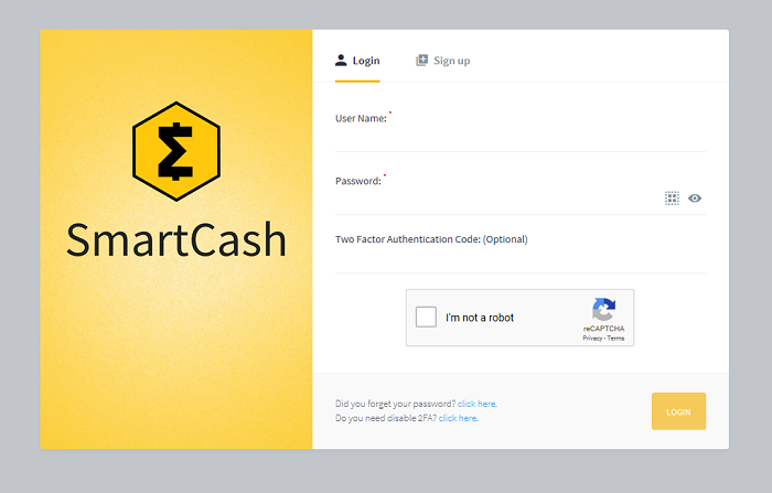 Create your smartcash wallet: On the sign-up tab, you will see a form to fill. Put in your details as instructed