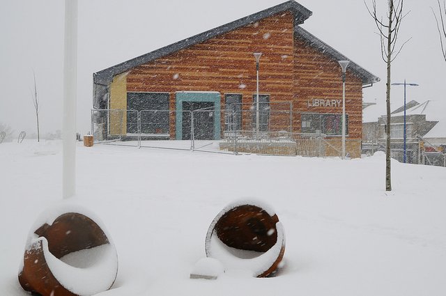 These are art installation pieces in the newly redeveloped town centre. But they're so new that folk probably just spent the snowy days tripping over them.