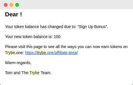 You will sent an email that will enable you activate your account. You will receive 100 Trybe tokens for signing up.