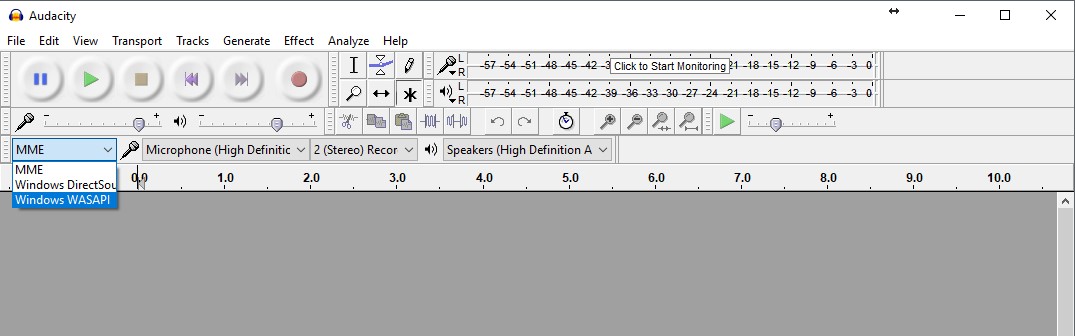 Once you've changed these settings, simply press the Record button (button with the red dot) to begin recording your system audio. Anything that you hear through your speakers will be recorded into the track on Audacity. You may then save the project or export the audio as you please.