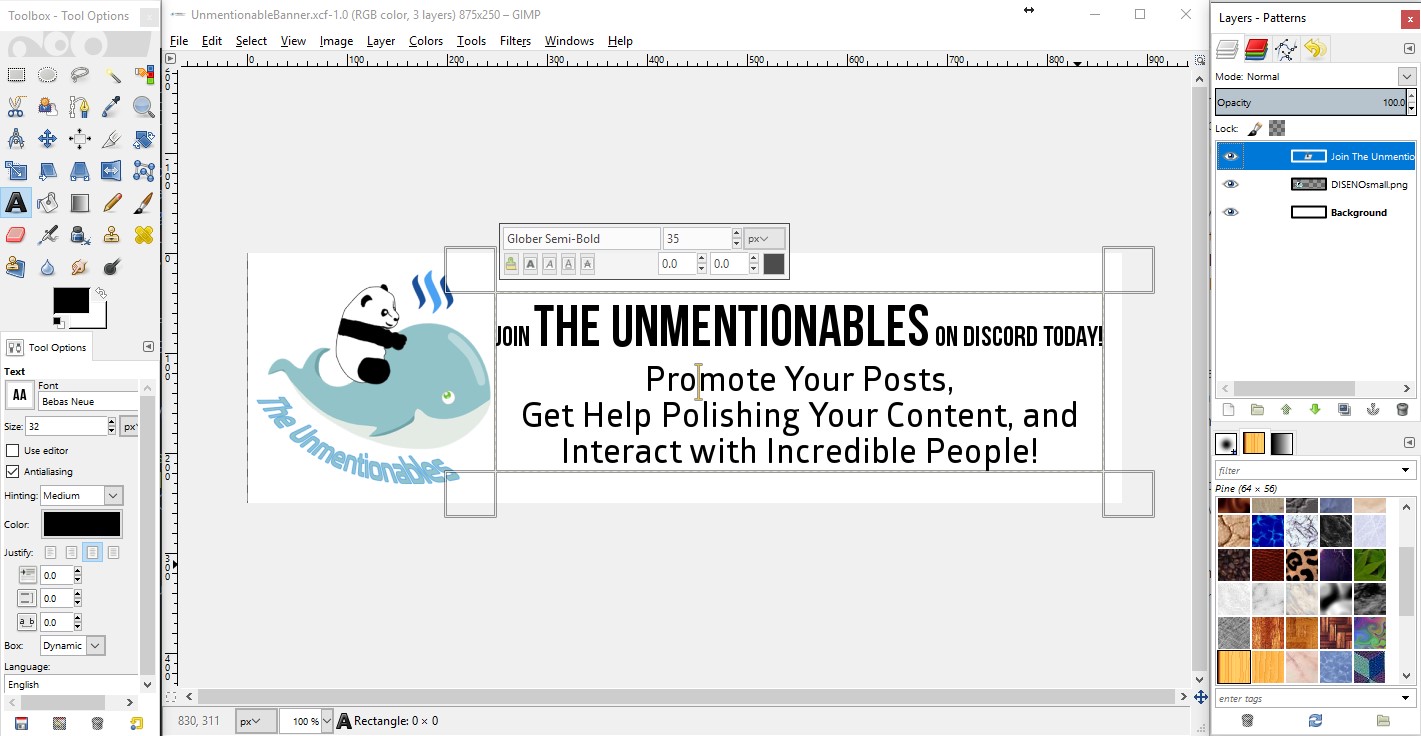 Lightsabers and embarrassing seasons of life aside, GIMP is extremely useful for quick graphic creation. For example, I made the two footer banners at the bottom of this post in GIMP using existing images and free font files I found online. Each line of text is a separate layer, so if I wanted to modify the banners at all, I can just reopen the GIMP project file (.xcf format) and change whatever I want to.
