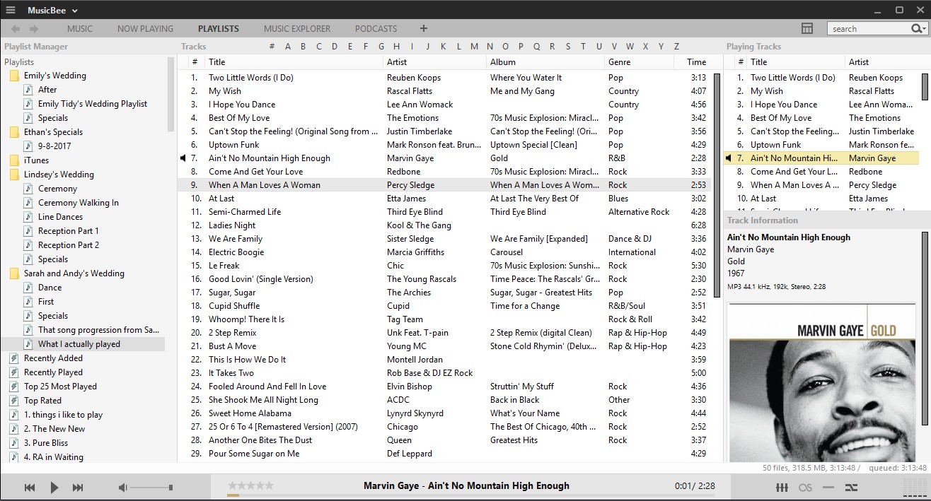 The best thing about MusicBee in my opinion is the playlist organization tree. You can create folders in the playlist window which can hold multiple playlists. This is much better than the standard iTunes method of just listing the playlists in alphabetical order down the side. Now I can group my playlists so I can find them easily the next time I need them.
