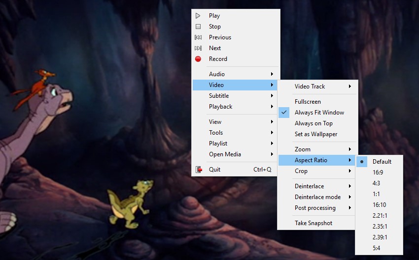 I use VLC most often to play movie files that I have ripped and converted from DVDs and Blu-rays that I own. It plays them flawlessly and includes subtitle and chapter support. The controls allow speeding up and slowing down video frame rates, adjusting the volume, skipping to the next item on a playlist, and cropping to fit a specific aspect ratio.