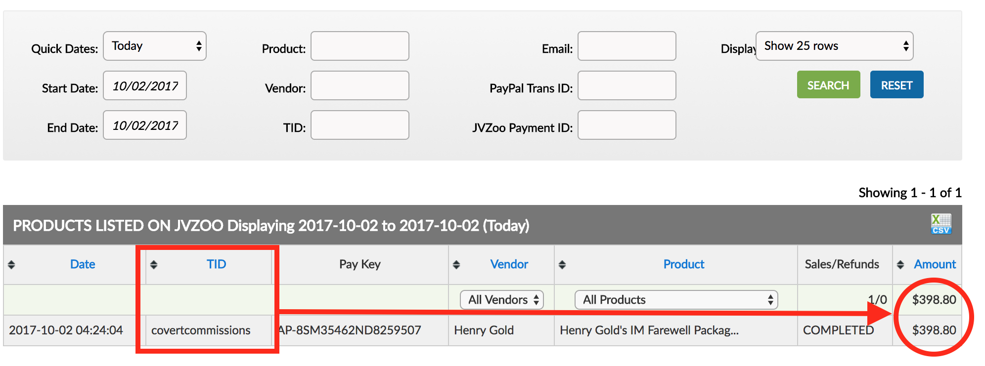 Users can see when they get a sale that comes as a result from Covert Commissions.