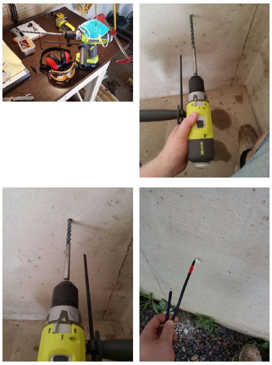 This one is dirty. If you only have a cordless Hammer Drill with a dull masonry bit like I did you are going to have a bad time. Concrete dust is going to go everywhere and it will mess up your lungs so wear a mask/respirator and goggles not just safety glasses. Hearing protection too. Trust me this part sucks.